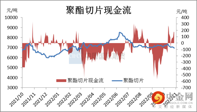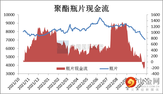 10月国庆后聚合成本端快速下跌,下游聚酯产品相对抗跌,涤纶长丝、直纺涤短效益有所走扩,POY、FDY扭亏为盈,DTY效益小幅走扩,直纺涤短加工差扩大至1300元/吨上方。聚酯瓶片加工费也从前期2000元/吨回落至1000-1200元/吨。瓶片价格和利润双降的原因主要在于:一、上游原料价格长期偏弱,对瓶片的内盘价格支撑力度持续减弱。二、下游大型客户四季度多已采购结束,多数开始商谈2023年的合约采购;中小客户终端订单一般,并且仍有前期库存储备,继续跟进补货意愿不足,海外客户也是如此。三、部分贸易商合约量到期执行较多,主动降价打压市场。