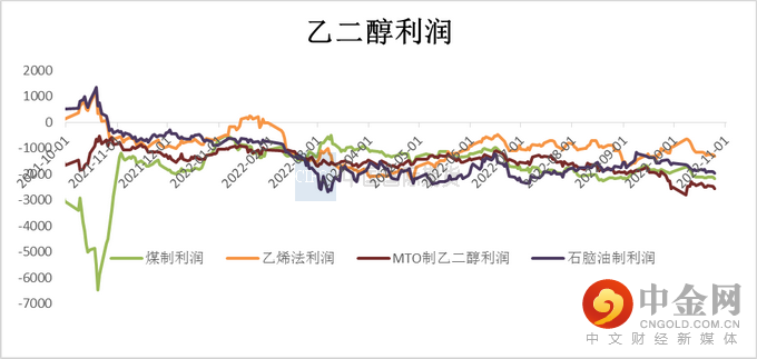 10月煤制乙二醇利润、石脑油制乙二醇利润继续回落。煤制乙二醇市场平均利润为-2030元/吨;甲醇制乙二醇市场毛利为-2469元/吨;乙烯制乙二醇平均利润为-1055元/吨;石脑油制乙二醇利润为-1832元/吨。9月下旬起,各地煤炭价格强势上涨,目前仍处于年内高位,而乙二醇价格在国庆节后短暂高开后迅速转弱,煤制企业生产依旧承压,前期效益问题停车装置重启驱动不足。年初以来乙二醇利润呈现连续亏损状态。