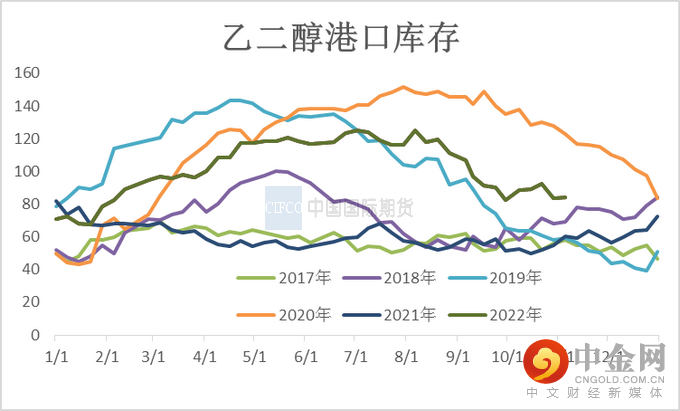 10月底华东主港地区MEG港口库存约84万吨,9月底港口库存82.2万吨,10月港口库存先增后降。10月乙二醇依旧处于供需去库的尾端,但是上半月内显性库存仍在高位堆积中,下半月起随着到货减少显性库存将得到去化,生产工厂库存快速消化,10月上半月上游生产工厂库存下降量在6-7万吨附近。