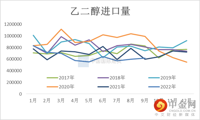 2022年9月进口乙二醇61.84万吨,均价525.22美元/吨,1-9月累计进口量580.84万吨,环比增加3.39%,同比减少3.07%。三季度乙二醇进口量178.7万吨,月均进口量在60万吨附近。进口三季度进口量超预期的原因:一方面受国庆假期影响部分货源预报关;另一方面海外需求收缩影响下货源挤占至中国市场。
