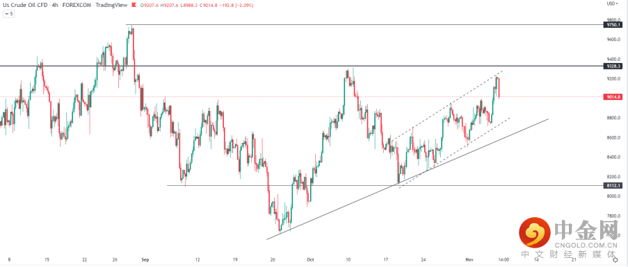 关键的问题在于上周的乐观情绪经过周末的消化后本周还能否延续?通道下轨和9-10月的上升趋势线或许能为油价的回调提供缓冲。