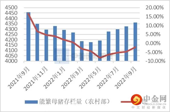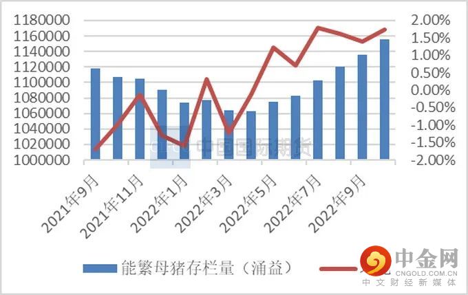 根据统计局数据显示,截至三季度末,全国生猪存栏44394万头,同比增长1.4%,环比增长3.1%,连续两个季度环比增长;9月末能繁殖母猪存栏4362万头,环比增加0.88%,较4月份低点增加4.4%,连续5个月环比增幅,较4100万头母猪基础量增加6.4%。根据涌益咨询数据显示,繁母猪环比增幅 1.70%,后备母猪留种量环比增加 1%。