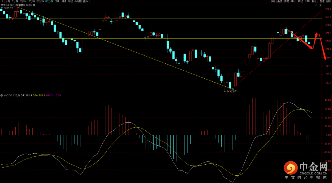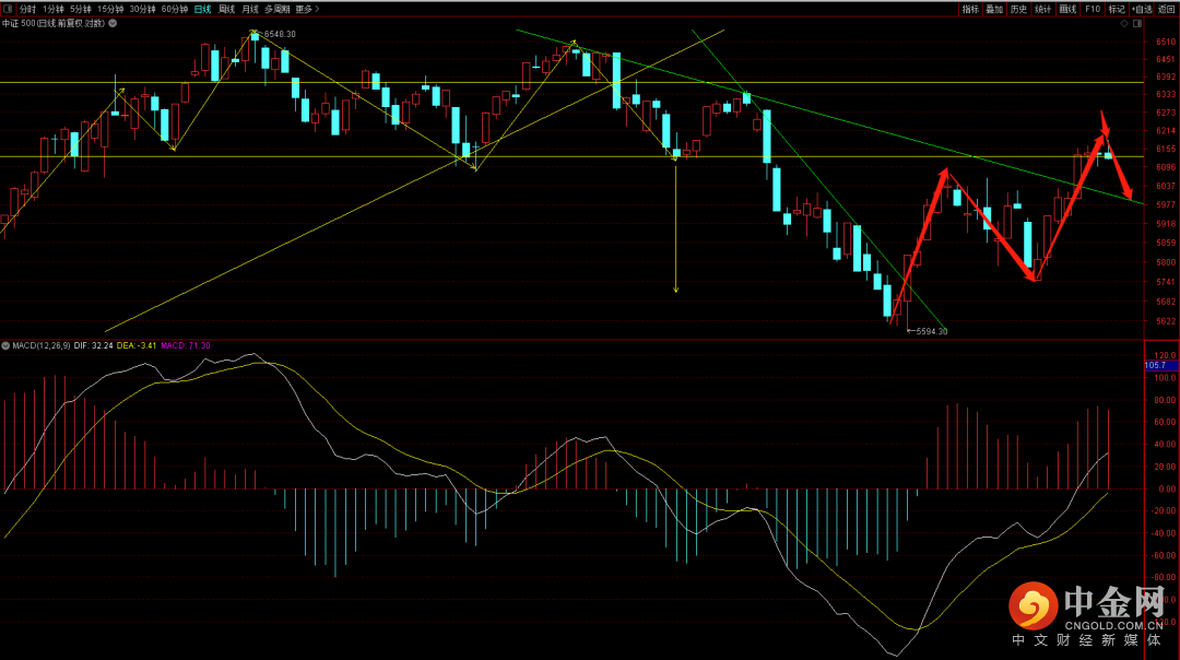 中证500短期构筑六十分钟三段背驰结构,如果有冲高大概率是高抛机会。关注6000点支撑,如果跌破则有概率向上试探5700点附近平台支撑。