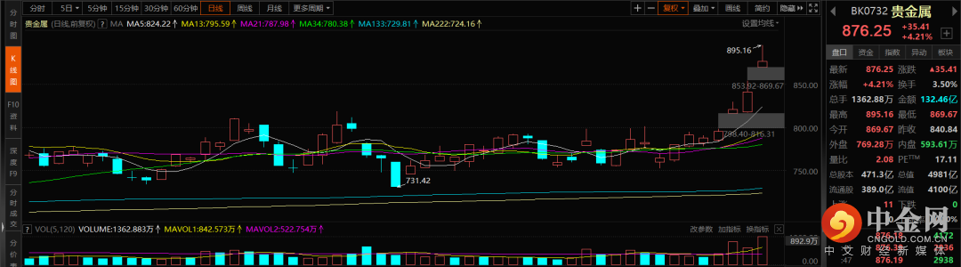 贵金属: 近日国际金价的上涨,带动了整个贵金属板块的上行。由于美元指数的下跌已经经济增长压力较大的缘故,黄金这个传统避险资产又开始引人重视。不过贵金属板块的波动较大,稳健的投资者还是建议选择黄金ETF类似的标的,更可能从长期黄金涨价的周期中获得稳健收益。