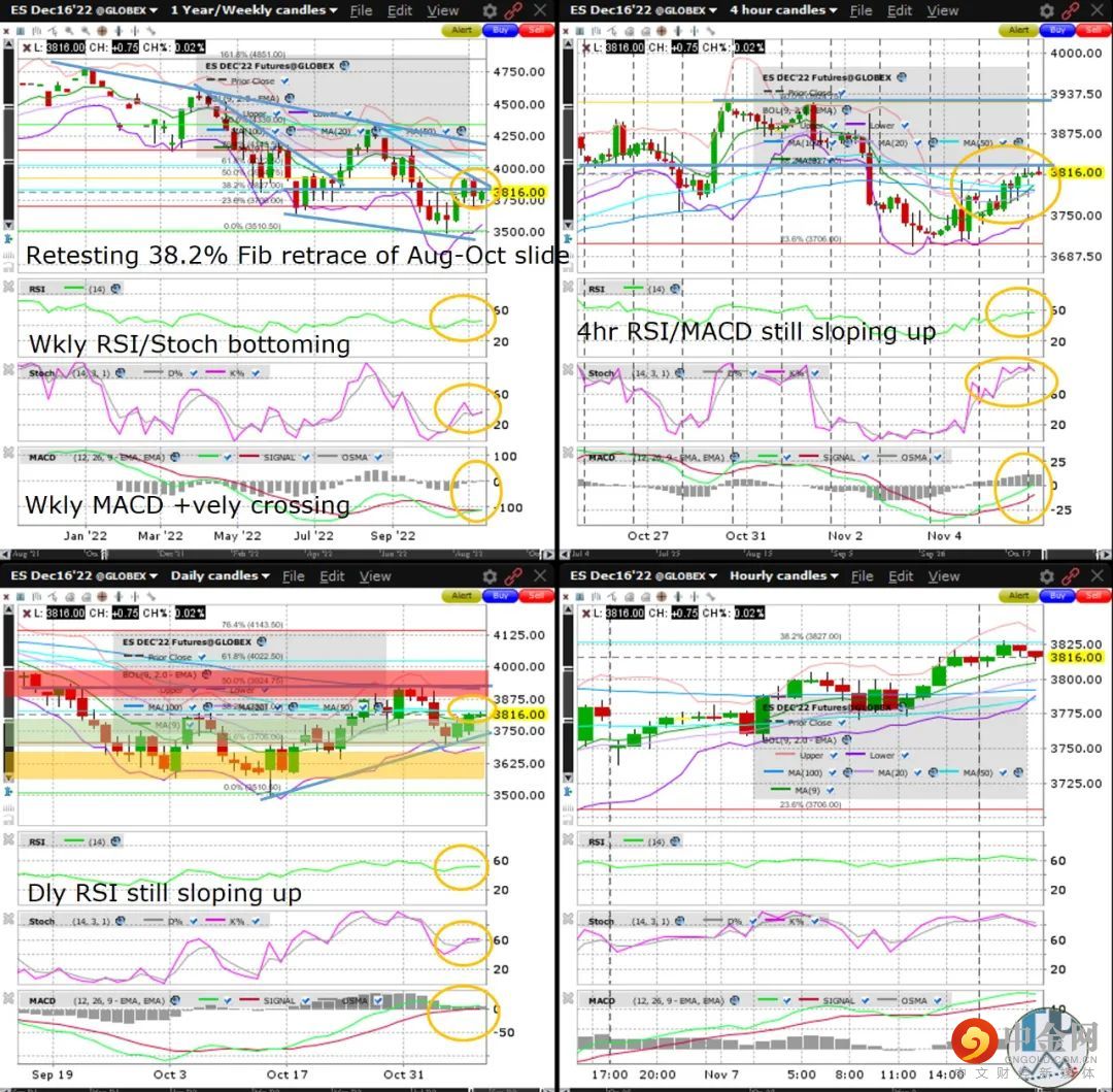 标普500指数期货(ES)正巩固进行了2天的反弹,看起来准备好了在本周再测试10月高点和8月至10月下滑的50%斐波那契回撤点位。