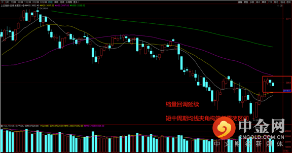 沪指连续两个交易日出现缩量回调,目前指数上有50天中期均线阻力,下有20天及10天均线双层支撑,可以简单理解为市场在上有压力下有支撑的情况下,形成了新的短期震荡区间,后续可观察该区域是否颇为判断行情走势。