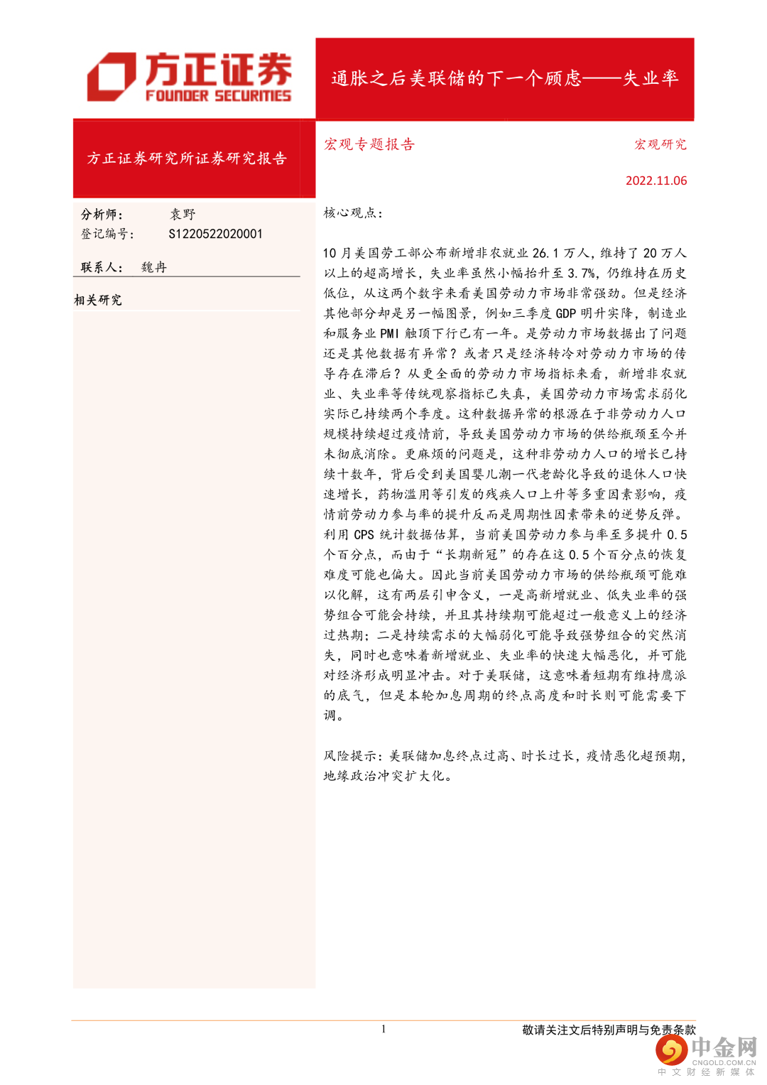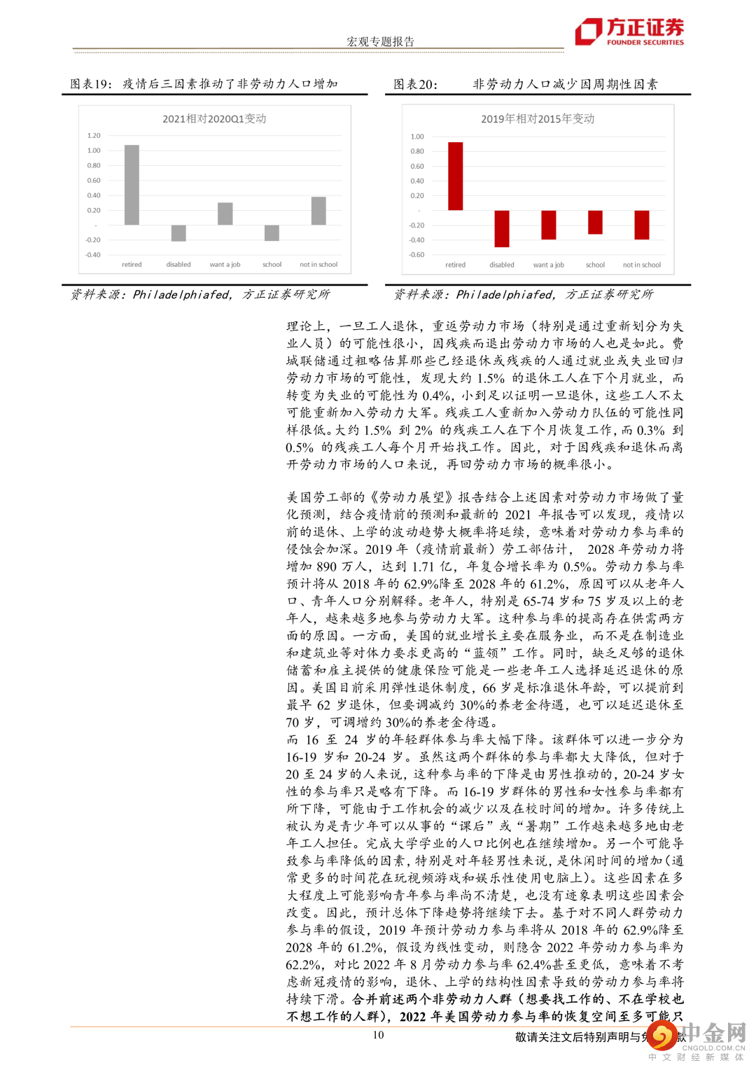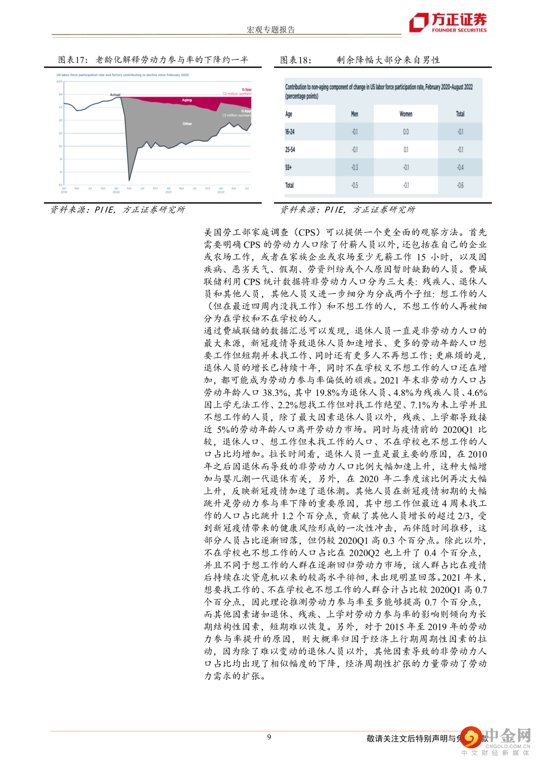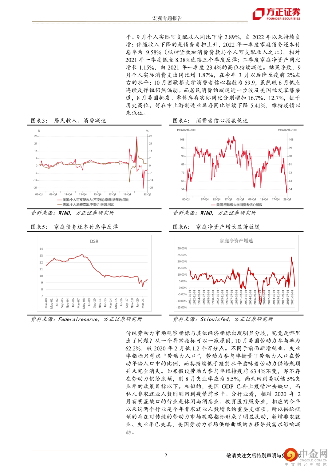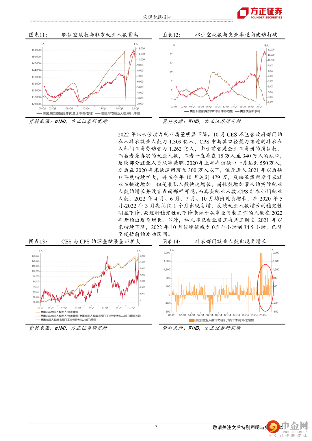 10月美国劳工部公布新增非农就业26.1万人,维持了20万人以上的超高增长,失业率虽然小幅抬升至3.7%,仍维持在历史低位,从这两个数字来看美国劳动力市场非常强劲。但是经济其他部分却是另一幅图景,例如三季度GDP明升实降,制造业和服务业PMI触顶下行已有一年。是劳动力市场数据出了问题还是其他数据有异常?或者只是经济转冷对劳动力市场的传导存在滞后?从更全面的劳动力市场指标来看,新增非农就业、失业率等传统观察指标已失真,美国劳动力市场需求弱化实际已持续两个季度。这种数据异常的根源在于非劳动力人口规模持续超过疫情前,导致美国劳动力市场的供给瓶颈至今并未彻底消除。更麻烦的问题是,这种非劳动力人口的增长已持续十数年,背后受到美国婴儿潮一代老龄化导致的退休人口快速增长,药物滥用等引发的残疾人口上升等多重因素影响,疫情前劳动力参与率的提升反而是周期性因素带来的逆势反弹。利用CPS统计数据估算,当前美国劳动力参与率至多提升0.5个百分点,而由于“长期新冠”的存在这0.5个百分点的恢复难度可能也偏大。因此当前美国劳动力市场的供给瓶颈可能难以化解,这有两层引申含义,一是高新增就业、低失业率的强势组合可能会持续,并且其持续期可能超过一般意义上的经济过热期;二是持续需求的大幅弱化可能导致强势组合的突然消失,同时也意味着新增就业、失业率的快速大幅恶化,并可能对经济形成明显冲击。对于美联储,这意味着短期有维持鹰派的底气,但是本轮加息周期的终点高度和时长则可能需要下调。