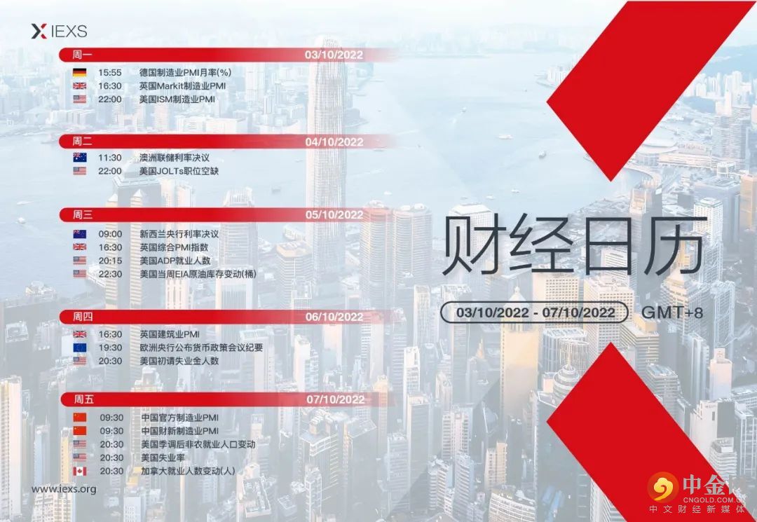 以下是10/3 - 10/7(GMT+8北京时间)重要经济事件以及相关货币提醒,由于行情结果不稳定,届时市场可能会面临大波动,导致市场缺口。IEXS证券提醒您,在管理风险时,请同时考虑其他任何重大行情新闻公告。