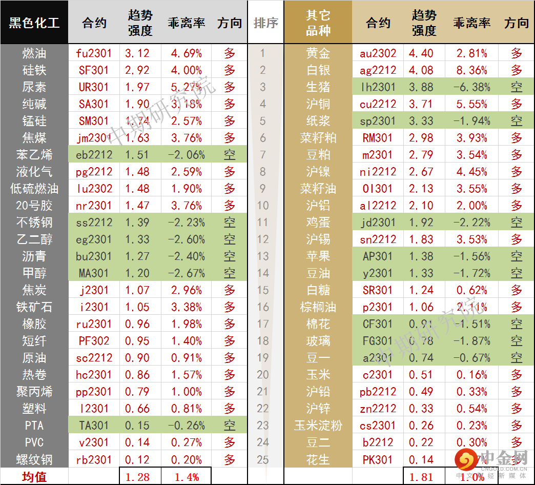 中期商品趋势榜 | 黄金多头动能蹿升(1109)