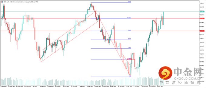 澳大利亚东岸时间11月11日(周五)凌晨,受美国10月通胀意外大幅降温的利好影响,美国股市出现了数年未见的罕见暴涨,其中纳指单日涨幅高达+7.35%,为2020年3月以来最佳表现,道指和标普500指数同样录得+3.75%和+5.50%大涨。
