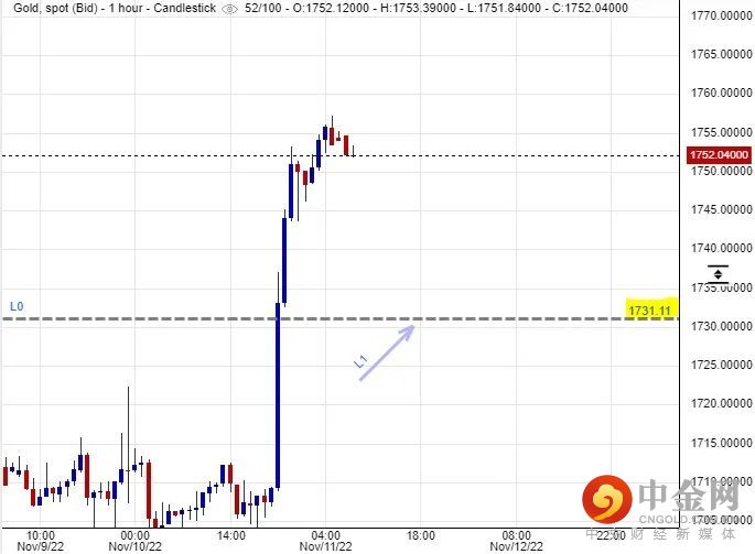 美国昨晚发布了的10月份消费物价指数,无论是整体消费物价抑或核心消费物价,这滞后性通胀数据正反映出美国通胀状况,在40年以来的高位水平有所降温迹象,对担忧加息的投资者来说,当然是一支强心针,因为通胀停止升温并逐步回落的势头,应该会增加对联储局减慢加息步伐和减少加息幅度的预期,风险承受意欲应该会升温,短期间有利金价向上测试$1,775美元附近的障碍。