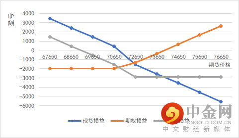 1月25日若铜期货价格低于72000元/吨,期权出现亏损,此时,套保者可以放弃行权,最大损失为权利金2000元/吨。而当现货价格下行出现盈利时,套期保值组合保留了盈利增加的机会。