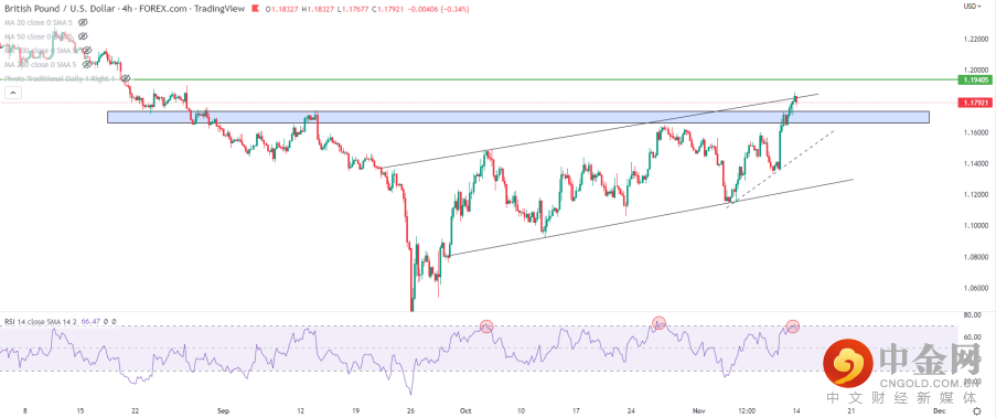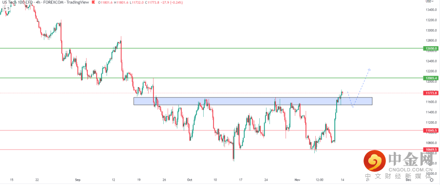 但1小时图上RSI指标的顶背离,暗示指数可能需要巩固11540-11690区域然后再伺机寻求延续性上涨。多头的下一个目标为12050一线,随后是12650附近。
