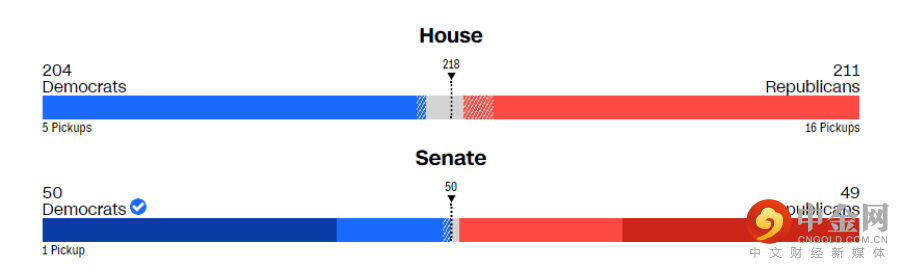 根据CNN等美国主流媒体的报道,民主党有望保持参议院的控制权(已经获得至少50席,无须等待12月6日乔治亚州的第二轮选举结果)但可能丢失众议院的多数席位。