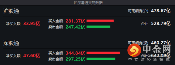 以每日额度余额口径,北向资金截至A股收盘净流入101亿元;以买卖成交额口径,北向资金净买入81亿元。