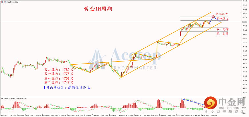 昨日美元指数反弹突破107后遇阻回落,黄金宽幅大震荡,日内跌到1753美元附近后,随着美元的回落,金价开始多头反攻,创了日内新高1775美元附近,因美联储官员表示可能很快放缓加息步伐,鸽派言论再次支撑黄金上涨。