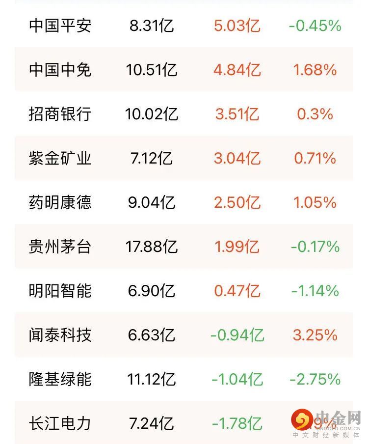 北向资金11月16日净买入9.98亿元,其中中国平安、中国中免、东方财富分别获净买入5.03亿元、4.84亿元、4.49亿元;宁德时代净卖出额居首,金额为4.52亿元。