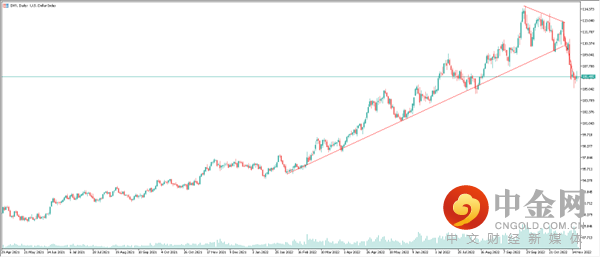 就在美国10月通胀数据出炉后,美元的涨势忽然中断,从2月初形成的长期上行趋势线上垂直滑落,从9月最高位的114.733跌至105.168,跌幅高达8.30%。