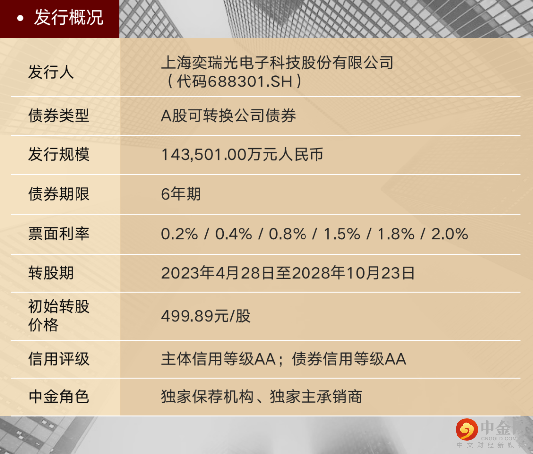 11月18日,上海奕瑞光电子科技股份有限公司(以下简称“奕瑞科技”或“公司”,代码688301.SH)上交所科创板向不特定对象发行可转换公司债券成功上市。