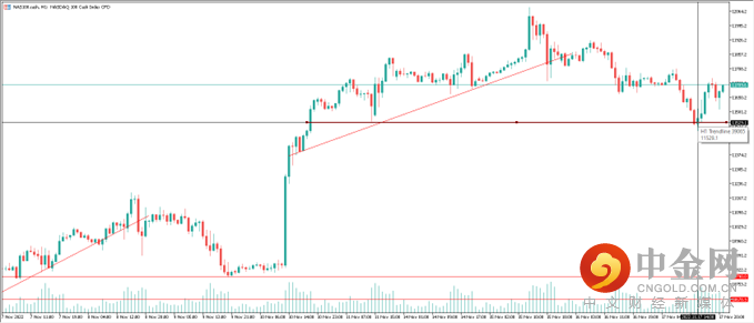 澳大利亚东岸时间11月18日(周五)凌晨,美国三大股指在美联储的强硬发言后小幅低收,市场对于圣路易斯联储董事James Bullard的激进言论并没有明显反应。道指平收、纳指下跌-0.35%(-38.7点)、标普500指数下跌-0.30%(-12.3点)。