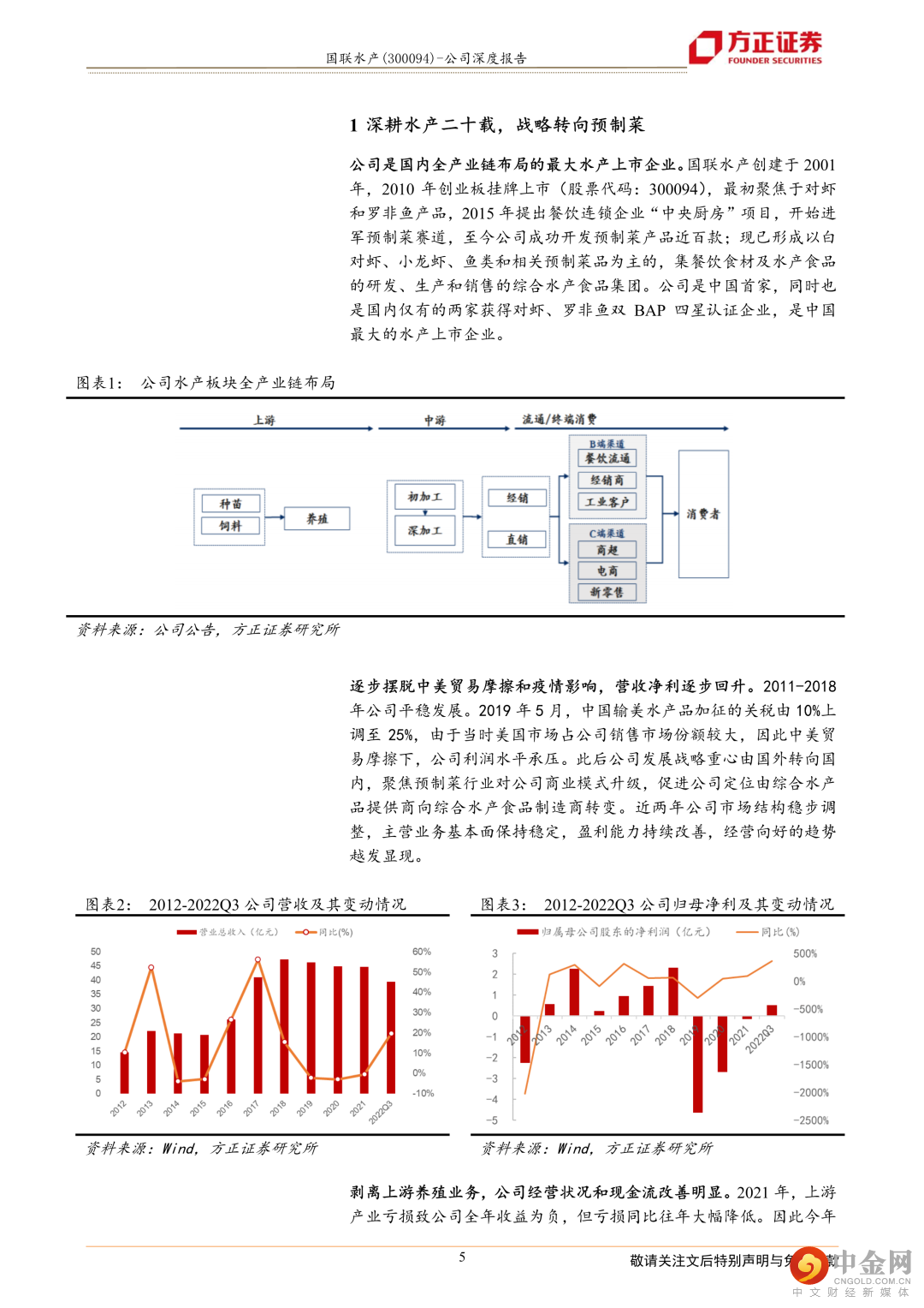 深耕水产二十载,战略转向预制菜。公司创建于2001年,是国内全产业链布局最大的水产上市企业。公司最初聚焦于对虾和罗非鱼产品,2015年开始进军预制菜赛道,至今已开发预制菜产品近百款。现已形成以白对虾、小龙虾、鱼类和相关预制菜品为主的,集餐饮食材及水产食品的研发、生产和销售的综合水产食品集团。