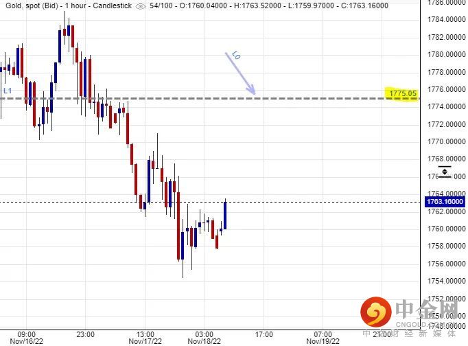 可以部署在$1,775美元左右建立淡仓盘,短线看淡金价一线至$1,743美元水平后止赚,止损在$1,783美元。