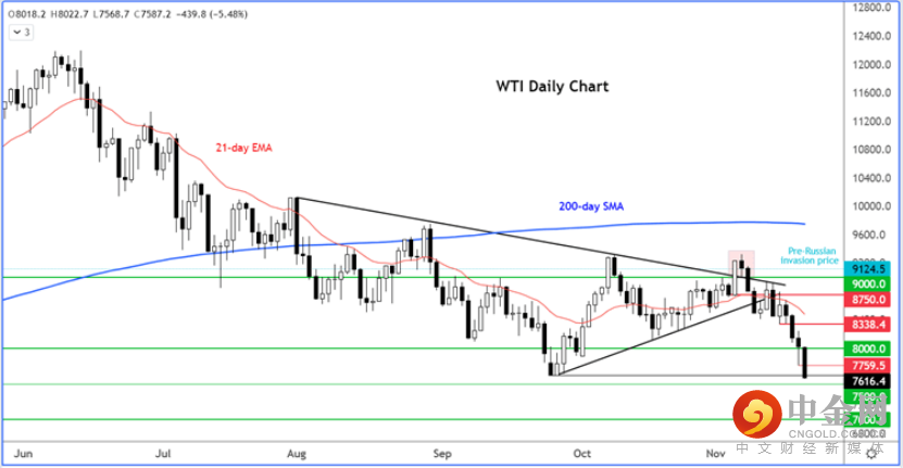 如果《华尔街日报》报道属实,那本周就做好准备迎接油价进一步下跌。市场担忧中国会因为新冠病例增多而扩大封控,石油需求在流动性减弱的经济环境下萎缩。