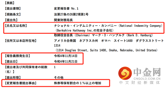 伯克希尔哈撒韦旗下的子公司持有丸红11604.56万股,持股比例从5.06%增加到6.75%。如果按照丸红最新的股价1494.50日元/股算,其最新的持股市值为1734.30亿日元。