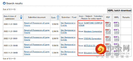 来自日本官方信息披露平台数据显示,11月下旬,伯克希尔哈撒韦旗下的全资子公司大举加仓了日本市场的五只股票,包括伊藤忠商事、丸红、三菱商事、三井物产和住友商事,增持比例都超过了1%。增持之后,对五只股票的持股比例处在6.21%-6.75%。