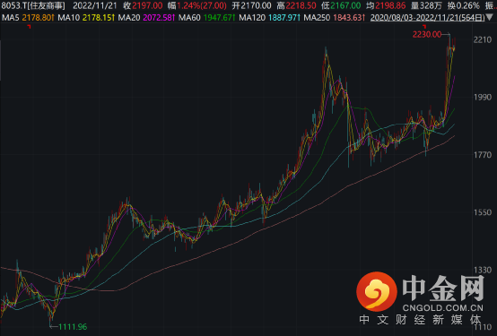 值得一提的是,在巴菲特增持的消息公布后,这五家商社的股价都得到提振,比如三菱商事收盘涨2.23%,丸红涨2.08%,住友商事涨1.24%,伊藤忠商事涨0.96%,三井物产涨0.18%。