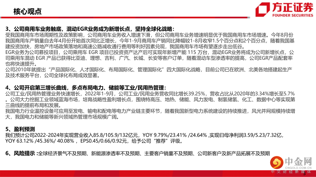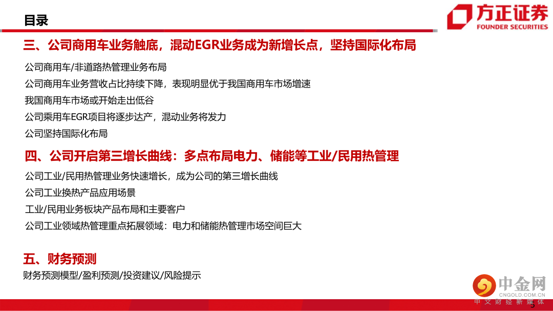 3、公司商用车业务触底,混动EGR业务成为新增长点,坚持全球化战略:受我国商用车市场周期性及政策影响,公司商用车业务收入增速下滑,但公司商用车业务增速明显优于我国商用车市场增速。公司乘用车混动 EGR 产品已获得多个客户订单,公司EGR产品配套率快速提升。