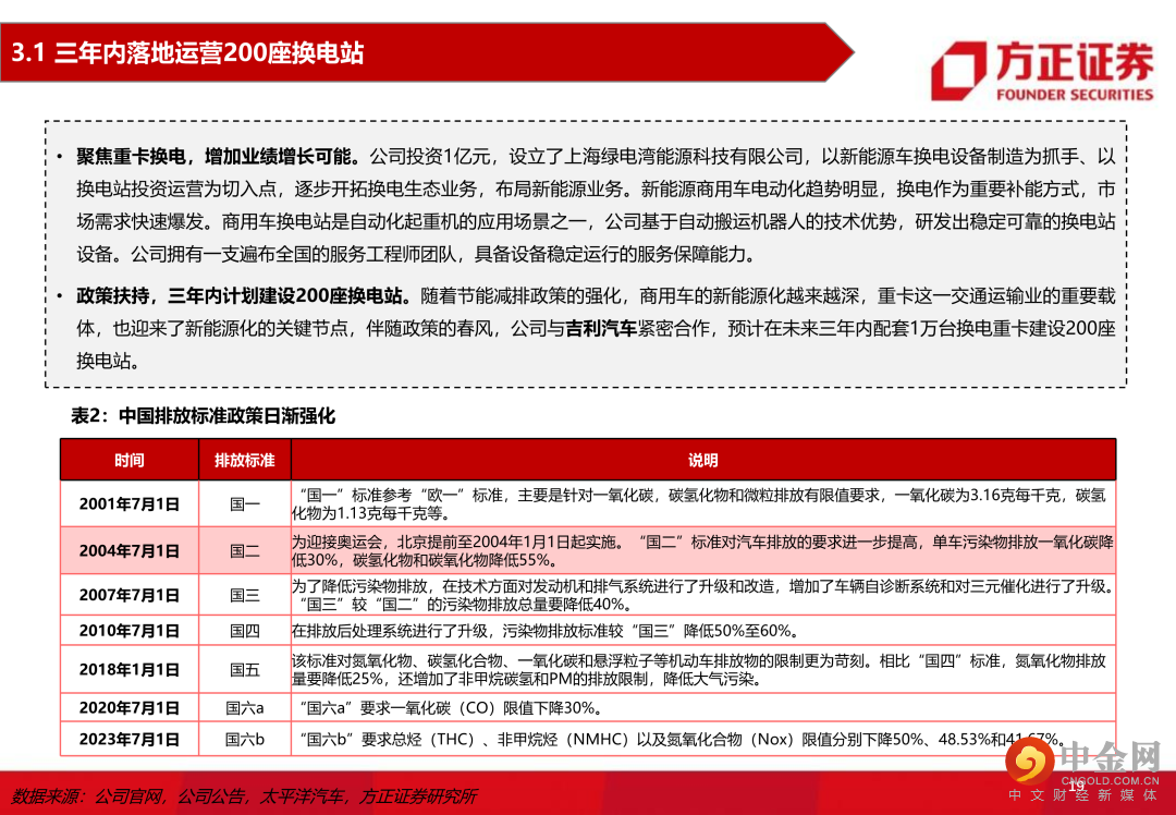 布局新能源换电业务,保障中远期增长空间。随着节能减排政策的强化,重卡这一交通运输业重要载体的新能源化越来越深,新能源重卡月销量不断提升,目前换电重卡已成为新能源重卡中规模最大、增长最快的细分市场。政策加码下换电站建设有望驶入发展快速路,2025年重卡换电站市场规模或达343.1亿。