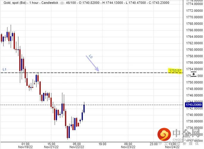 可以部署在$1,753美元左右建立淡仓盘,短线看淡金价一线至$1,722美元水平后止赚,止损在$1,761美元。