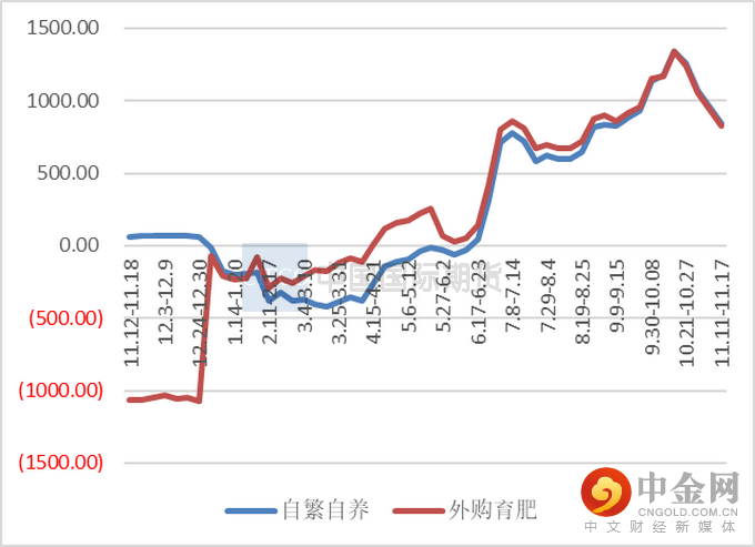 上周自繁自养周均盈利846.02元/头,外购仔猪盈利830.61元/头。上周生猪价格继续下跌,养殖盈利继续收缩。
