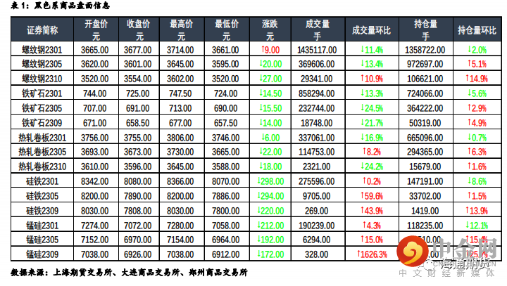 涨 20 元/吨至 3850 元/吨。螺纹 01 合约,永安期货买单持仓增加 568 手,卖单持仓减少 9535 手;前二十名期货公司买单持仓减少 24144 手,卖单持仓减少 27961 手。钢联数据显示,11 月 21 日全国建材成交量合计 15.2 万吨、环比降低,低于上周的成交量均值 16.1 万吨,上周全国样本钢厂螺纹钢周产量为 290.67 万吨,环比小幅降低 5.79 万吨,螺纹社会库存周环比降低 15.23 万吨至 363.8 万吨,钢厂库存环比小幅降低 6.06 万吨至 174.85 万吨,螺纹总库存连续四周下降,螺纹表需环比小幅降低 10.68 万吨至311.96 万吨、同期偏低水平,热卷表需周环比小幅增加 6.68 万吨至 312.43万吨,同期偏低水平。从上周数据来看,螺纹、热卷产量均有小幅降低,五大钢材产量延续下降趋势,螺纹与热卷的厂库、社库均有所下降,但去库速度放缓,螺纹表需周环比连续两周回落,热卷表需小幅增加,均处同期偏低位置。当前疫情环境仍显动荡,钢厂普亏格局延续,叠加近期部分地区行政化限产或重污染天气响应均将对供应端形成一定压制,供应和需求均呈现走弱格局,库存低位仍为当前钢价的主要支撑力,但当前多地疫情扰动加剧,淡季背景下现实需求难有明显上行,钢价盘面近期大概率将振荡运行。