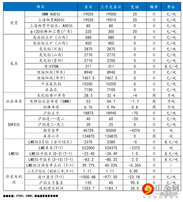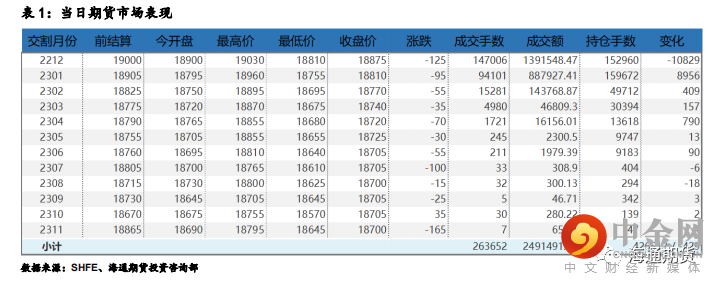 沪铝震荡小幅下跌,主力合约 2212 收盘跌 125 元至 18875 元/吨,跌幅为 0.66%;当日 15:00 收盘伦敦三月铝报价 2375.00 美元/吨。现货方面,华东地区成交集中在 19000-19040 元/吨,现货升贴水持平于昨日的升水 70 元/吨;中原(巩义)地区成交集中在18900-18940 元/吨,现货升贴水较昨日回落 40 元至贴水 30 元/吨。今日贸易商出货积极,但下游采购仍以刚需为主,成交氛围一般,华东地区暂未有大量到货,库存低位对升水仍有一定支撑。产业方面,据海关数据 10 月我国原铝进口量 6.74 万吨,环比增加 4.3%,同比减少 51.8%;1-10 月我国原铝累计进口 42.97 万吨,累计同比减少66.11%;1-10 月净进口 23.68 万吨,同比减少 81.2%。宏观层面情绪边际转弱,基本面上国内电解铝社会库存延续低位去库,处于历年同期和 2022 年来的新低水平,不目前库存下降仍是到货量偏少所导致,后续随着物流发货逐步恢复正常,需要关注在途货源到货情况。供需稳中趋弱,供应端国内目前暂未有新的减产,四川复产持续,广西发布电解铝复产鼓励措施,当地后续复产或有加快。需求端下游铝加工企业开工率仍低位运行,随着防疫政策优化调整国内消费有好转预期,但淡季预计改善有限。现货市场拿货情绪略有转弱,巩义地区再次转为贴水。短期低库存支撑仍在但需求端未有明显起色,宏观反复后关注铝价上方压力,不过上期所仓单已回落至历年低位,需要警惕。