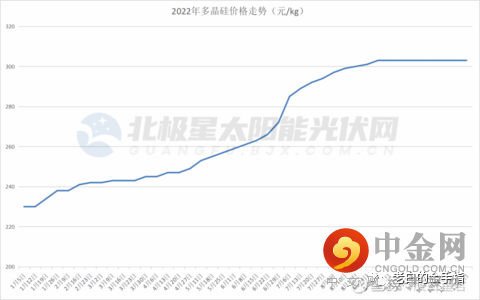 据北极星太阳能光伏网跟踪PVInfoLink报价,经过2021年末短暂下调后,今年年初至8月底上游硅料价格一路“飞驰”,多晶硅料价格由230元/kg上涨至303元/kg,最高峰时曾攀至310元/kg,涨幅高达35%。