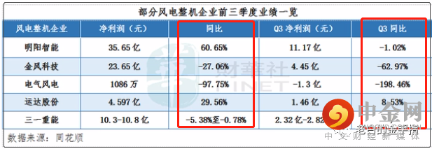 以上这几位,属于风电整机阶段的前排企业,三季报的表现差异非常大,如果只看单季表现,大部分都是同比负增长.