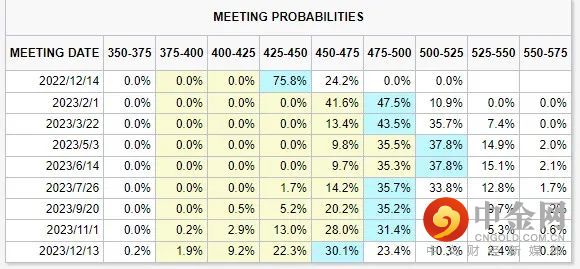 随着通胀飙升,美联储转向了激进的加息——最近四次加息均为75个基点,将联邦基金利率提升至3.75% - 4%的区间。目前,利率期货市场对于本轮加息周期的利率峰值预期区间集中在4.75%—5.25%,美联储在今年12月可能放缓加息步伐,加息50个基点概率接近80%。