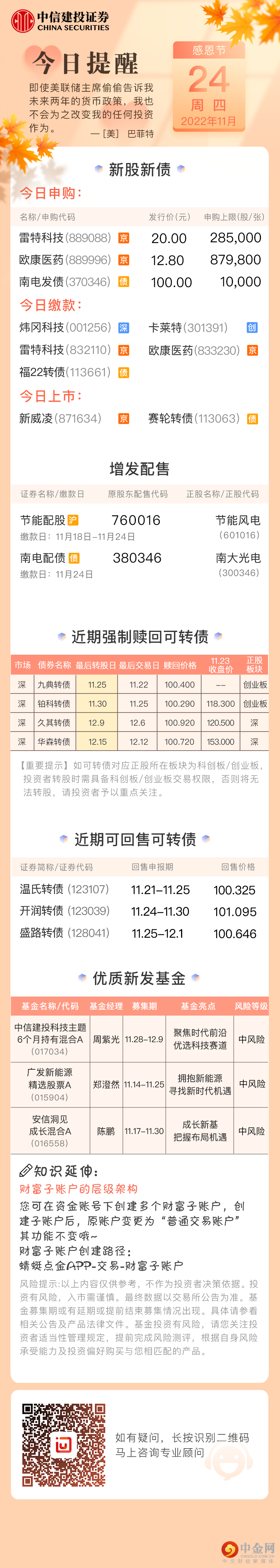 今日投资提醒(11月24日)