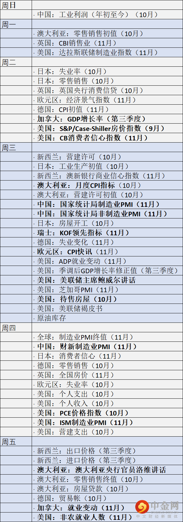 本周经济数据很重要!鲍威尔将于周三发表讲话,这恰好是11月的最后一天(注意月末资金流向)。周四,美国将发布美联储最仰仗的通胀指标核心PCE数据。预计数据同比下降至5%,而9月为5.1%。周五,美国将发布就业数据。11月非农就业数据预计为+200,000,而10月为+216,000。尽管有所下降,但仍有望保持强势。更高的数据可能会给予美联储信心在12月会议上加息75个基点。此外,欧元区将于周三发布11月CPI数据初值。预计整体数据同比下降至10.4%,而前值为10.6%。更高的数据可能会让欧洲央行在12月会议上也加息75个基点。