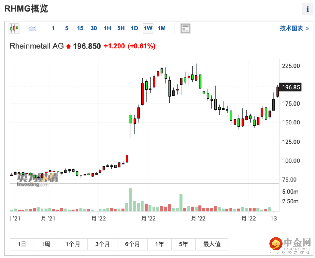 这也直接刺激了欧美军火商的股价大涨,以德国的莱茵金属公司(Rheinmetall AG)为例,自2022年年初以来,莱茵金属股价累计涨幅高达137%。