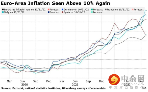 (欧元区通货膨胀率或再次超过10%)