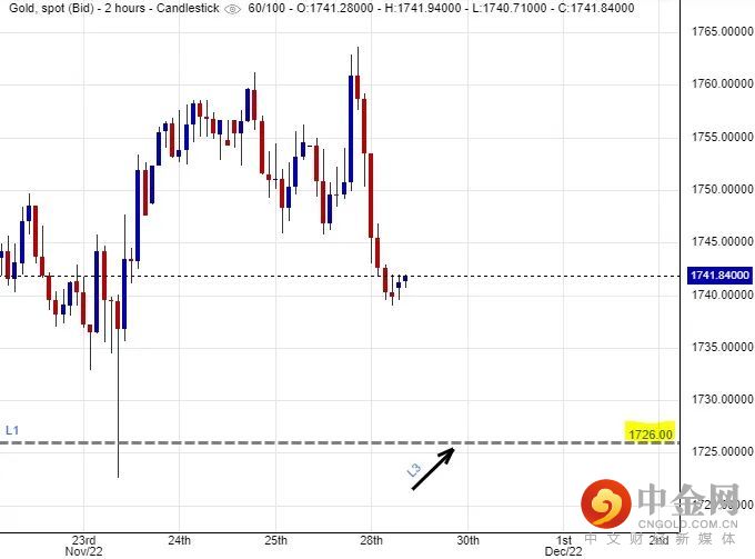 根据利率期货市场显示,市场人士预计联储局在12月的议息会议上,只是加息半厘到4.25%至4.50%区间的机率是67.5%,而加息四份三厘到4.50%至4.75%范围的机率是32.5%,数字反映出投资者对联储局在12月必然会减慢加息步伐的憧憬有所减少,有机会是投资者感受到通胀虽然有降温迹象,但降温程度远远不及联储局多次积极加息后所希望见到抑压通胀的成效。因此,联储局在12月会放慢加息步伐的预期有所减少,在联储局于打后的会议上仍有积极加息可能性的影响下,加息担忧亦会影响着买入黄金的风险承受意欲,金价短线未必能够轻易地突破$1,760美元水平的阻力。
