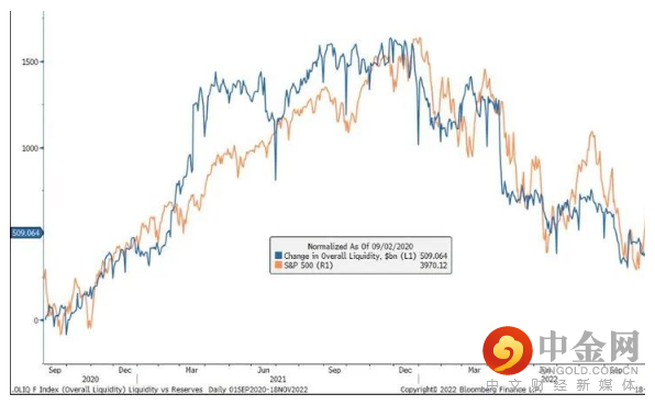 考虑到所有这三个因 素,Metli和他的同事发现,在过去10年的大部分时间里,流动性措施和标普500指数表现出了紧密的联系,六个月的相关系数达到了0.70(读数为1意味着完全同步移动)。