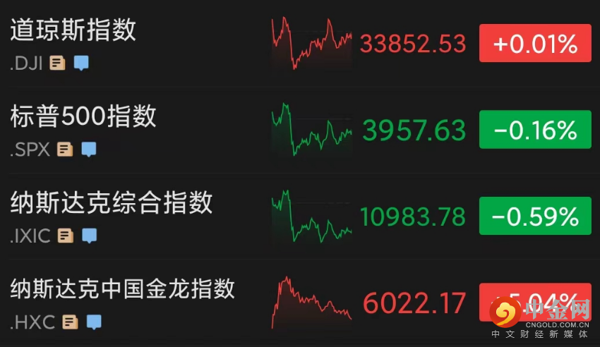 当地时间周二,美股三大指数收盘涨跌不一。道指涨0.01%,标普500指数跌0.16%,纳指跌0.59%。
