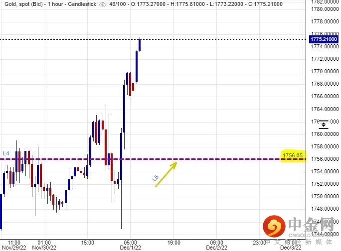 联储局主席鲍威尔昨日在美国智库机构Brookings Institution发表演说时,释放出鸽派加息展望的言论,他表示最快可以在12月份的时候减慢加息步伐。因应联储局主席的放慢加息步伐方向,买入黄金的风险胃纳应该会逐步增加,可以推动投资者把资金重新投放到黄金市场里去金价 短期间应该会受惠而向上发展。