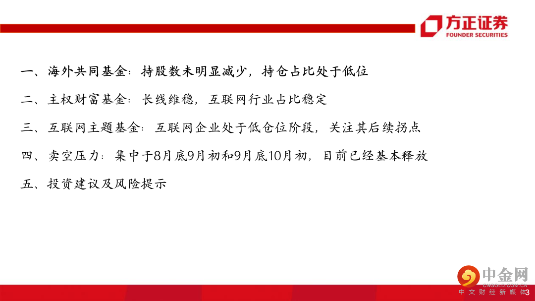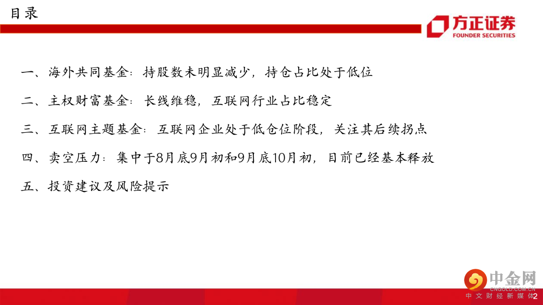 三、互联网主题基金:互联网企业处于低仓位阶段,关注后续拐点。对互联网企业减持或空仓趋势明显,后续加仓空间较大。