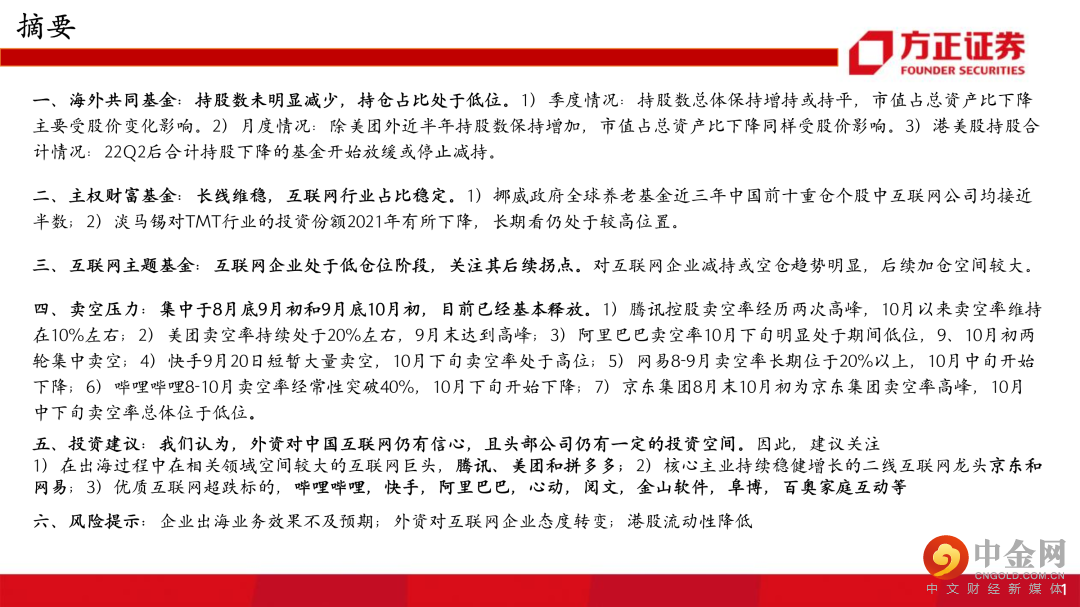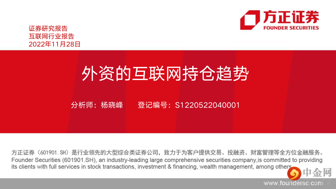 本文来自方正证券研究所于2022年12月1日发布的报告《外资的互联网持仓趋势》。