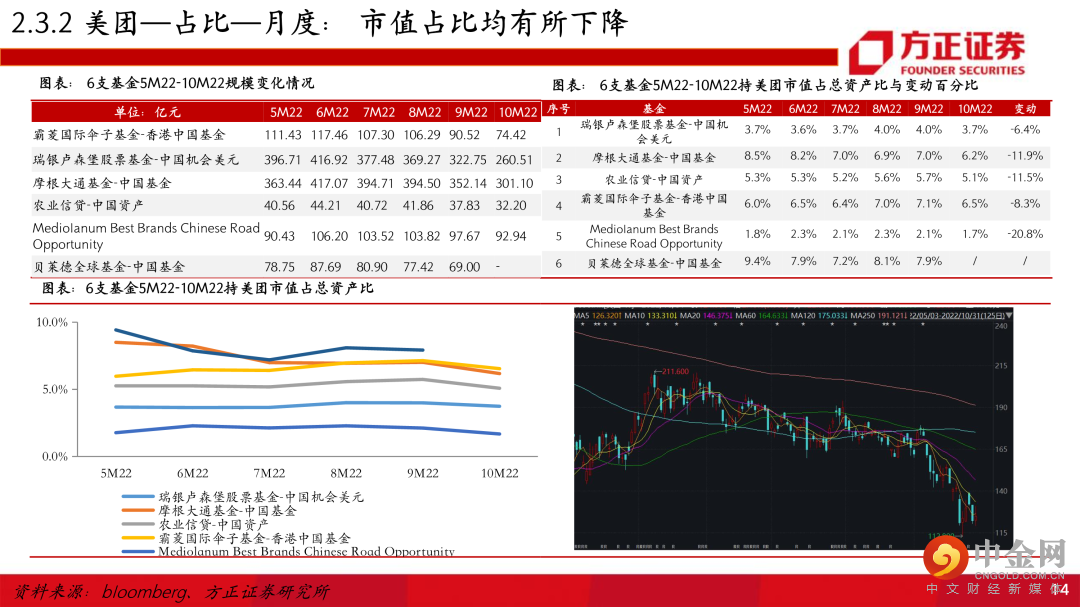 一、海外共同基金:持股数未明显减少,持仓占比处于低位。1)季度情况:持股数总体保持增持或持平,市值占总资产比下降主要受股价变化影响。2)月度情况:除美团外近半年持股数保持增加,市值占总资产比下降同样受股价影响。3)港美股持股合计情况:22Q2后合计持股下降的基金开始放缓或放停减持节奏。